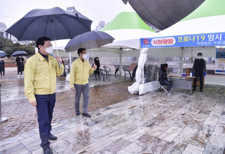 [ÅåÅå´º½º]À̿뼷 ±¤ÁÖ±¤¿ª½ÃÀåÀº ÀÏ¿äÀÏÀÎ 27ÀÏ ±¤ÁÖ½Ãû ±¤Àå Àӽà ¼±º°°Ë»ç¼Ò¿Í ±¤ÁÖÀϰ¿øÀ» Â÷·Ê·Î ¹æ¹®ÇØ ÇöÀåÀÇ Äڷγª19 ´ëÀÀ »óȲÀ» Á¡°ËÇϰí ÀÇ·áÁøµéÀ» °Ý·ÁÇß´Ù.