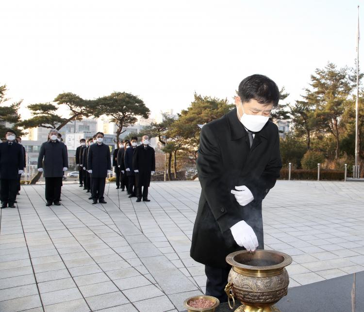À̳¯ ½Ã¹«½ÄÀº Äڷγª19 °¨¿° ¿¹¹æÀ» À§ÇØ Àå¼®¿õ ±³À°°¨À» ºñ·ÔÇÑ °£ºÎÁø°ú 1¿ù1ÀÏÀÚ Àλç¹ß·ÉÀ¸·Î º»Ã»¿¡ ÀüÀÔÇÑ Á÷¿ø µîÀ¸·Î Âü¼®ÀοøÀ» ÃÖ¼ÒÈÇÏ°í ¹æ¿ª¼öÄ¢À» ÁؼöÇÑ °¡¿îµ¥ ÁøÇàµÆ´Ù. ³ª¸ÓÁö Á÷¿øµéÀº °¢ÀÚÀÇ »ç¹«½Ç¿¡¼ û ³» TV¸¦ ÅëÇØ ½Ã¹«½Ä »óȲÀ» ½ÃûÇß´Ù.