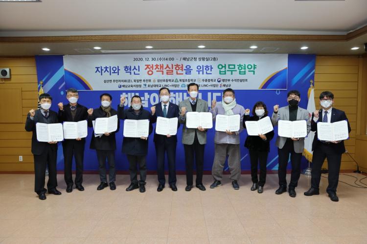 À̹ø ¾÷¹«Çù¾à¿¡´Â ÇØ³²±ºÀ» ºñ·ÔÇØ »ï»ê¸é ÁÖ¹ÎÀÚÄ¡ÁغñÀ§¿øÈ¸(°øµ¿´ëÇ¥ ¹Ú¿¬È£), ºÏÀÏ¸é »ç°ú²Éµµ¼°ü ÃßÁøÀ§¿øÈ¸(°øµ¿´ëÇ¥ Àå³²ÁÖ), ºÏÀÏÃÊ(±³Àå ½ÅÇö), »ï»êÃÊ(±³Àå ¾ÈÇýÀÚ), µÎ·ûÁß(±³Àå ±èµ¿¼±), Çà¾ÈºÎ ÁÖ¹ÎÀÚÄ¡ ¼ö¼®ÄÁ¼³ÅÏÆ®(¹®º´±³), ÇØ³²±³À°Áö¿øÃ»(±³À°Àå À强¸ð), È£³²´ë¸µÅ©»ç¾÷´Ü(¾ç½ÂÇÐ ´ÜÀå), ¸ñÆ÷´ë¸µÅ©»ç¾÷´Ü(ÀÌ»óÂù ´ÜÀå)ÀÌ Âü¿©Çß´Ù.