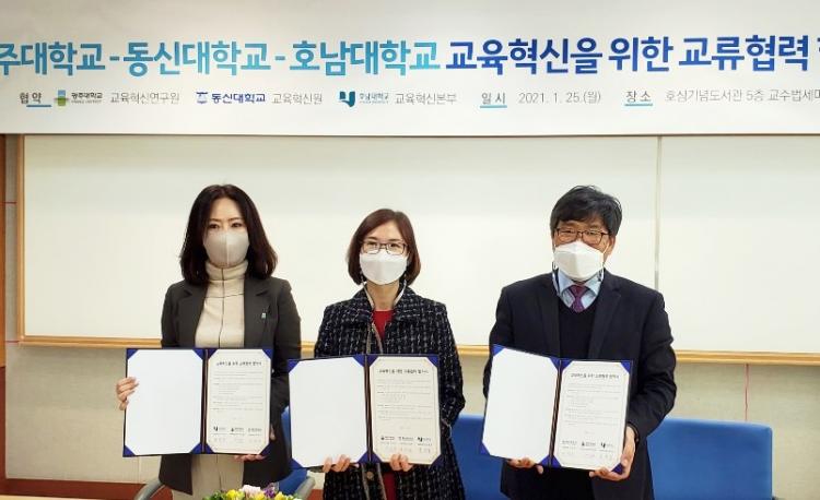 ±¤ÁÖ´ëÇб³ ÇнÀ¹ý ¼¼¹Ì³ª½Ç¿¡¼ ¿¸° Çù¾à½Ä¿¡´Â È£³²´ëÇб³ ¼Ûâ¼ö ´ëÇÐÇõ½Åº»ºÎÀå, ±¤ÁÖ´ëÇб³ ¹ÚÁø¿µ ±³À°Çõ½Å¿¬±¸¿øÀå, µ¿½Å´ëÇб³ À̼ºÁÖ ±³À°Çõ½Å¿øÀåÀÌ Âü¼®Çß´Ù.