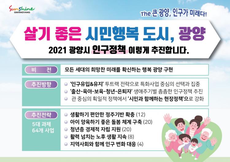 [ÅåÅå´º½º]±¤¾ç½Ã°¡ Àα¸Á¤Ã¥ Á¾ÇÕ°èȹ ¼ö¸³ 3³â Â÷¸¦ ¸ÂÀÌÇØ ¿ÃÇØ´Â ¡®Àα¸ À¯ÀÔ°ú À¯Áö¡¯¸¦ ¸ñÇ¥·Î Àα¸Á¤Ã¥À» ÅõÆ®·¢ ¹æÇâÀ¸·Î ÀüÈ¯ÇØ ÃßÁøÇÑ´Ù. Á¤Ã¥¼º°ú Æò°¡¿Í Àα¸¿µÇâ °ËÅ並 ÅëÇÑ Àü¹®°¡ ÀÚ¹® µîÀ¸·Î ½ÃÃ¥ ÃßÁøÀÇ ³»½ÇÀ» ±âÇϰí, ±¤¾çÇü Æ¯È Àü·«À» ÅëÇØ ½Ã¹Î ü°¨µµ¸¦ ³ôÀ̰ڴٴ ±¸»óÀÌ´Ù.
