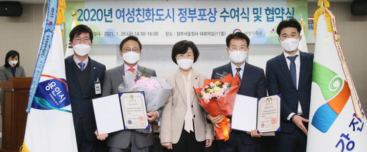 [ÅåÅå´º½º]°Áø±ºÀÌ Áö³ 1¿ù 29ÀÏ Á¤ºÎ¼¿ïû»ç ´ëȸÀǽǿ¡¼ ¿¸° ¿©¼º°¡Á·ºÎ ÁÖ°ü ¡®2020³âµµ ¿©¼ºÄ£Èµµ½Ã Á¤ºÎÆ÷»ó ½Ã»ó½Ä ¹× Çù¾à½Ä¡¯¿¡¼ ´ëÅë·É ǥâÀ» ¼ö»óÇß´Ù.