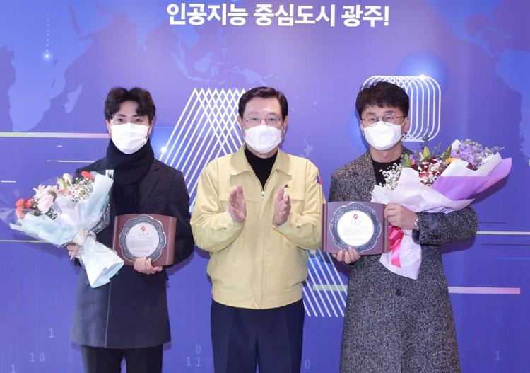 [ÅåÅå´º½º]±¤ÁÖ±¤¿ª½Ã´Â 5ÀÏ ¿ÀÈÄ ½Ãû Á¢°ß½Ç¿¡¼ ¿ÃÇØ ù ÀÇ·Î¿î ½Ã¹Î¿¡ ¼±Á¤µÈ ±è·¡ÁØ(46)¾¾¿Í ±èº¸°Ç(30)¾¾¿¡°Ô ǥâÆÐ¸¦ ¼ö¿©ÇÏ°í °¨»çÀÇ ¸¶À½À» ÀüÇß´Ù.