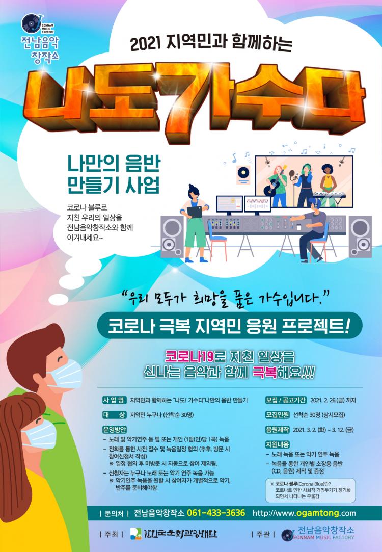 '³ªµµ °¡¼ö´Ù' À½¹ÝÁ¦ÀÛ »ç¾÷Àº Àü³²À½¾ÇâÀÛ¼ÒÀÇ ³ìÀ½½Ã¼³À» ÅëÇØ Äڷγª·Î ÁöÄ£ Áö¿ª¹ÎÀÇ ¸¶À½À» À½¾ÇÀ̶ó´Â ¸Å°³Ã¼¸¦ ÅëÇØ ÀÚ½ÅÀÇ °¨Á¤À» Àû±ØÀûÀ¸·Î Ç¥ÇöÇÔÀ¸·Î½á ¡®Äڷγª ºí·ç¡¯´Â ³¯¸®°í Èï ³ÑÄ¡´Â »õÇØ¸¦ ¿ÀÚ´Â ÃëÁö·Î ±âȹµÆ´Ù.
