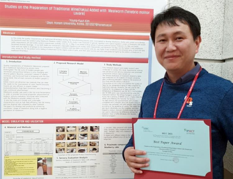 ¿ÃÇØ·Î 7ȸ°¸¦ ¸ÂÀº À̹ø Çмú´ëȸ¿¡¼ ±è¿µ±Õ ±³¼ö´Â ¡®½Ä¿ë°ïÃæÀ» ÷°¡ÇÑ ÀüÅë ¾àÁÖ °³¹ß¡¯(Studies on the Preparation of Traditional Wine(Yakju) Added with Mealworm(Tenebrio molitor Lavare))¡¯ ÇÁ·Î¼¼½º ¿¬±¸ ³í¹®À» Á¦ÃâÇØ ÃÖ¿ì¼ö ³í¹®»ó ¼ö»óÀÇ ¿µ¿¹¸¦ ¾È¾Ò´Ù.