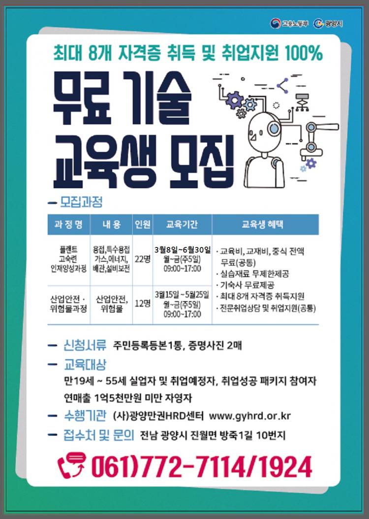 ¡®±¤¾ç½Ã Çٽɻê¾÷ °í¼÷·Ã ÀÎÀç¾ç¼º ÇÁ·ÎÁ§Æ®¡¯´Â ¿ÃÇØ ½Å±Ô»ç¾÷À¸·Î, Ç÷£Æ® °í¼÷·Ã ÀÎÀç ¾ç¼º°úÁ¤°ú »ê¾÷ÇöÀå ¾ÈÀü¡¤À§Çè¹° Àü¹®Àη ¾ç¼º°úÁ¤À¸·Î »ó¡¤ÇϹݱ⿡ ¿î¿µµÇ¸ç ÃÑ 68¸íÀÇ ÀÎÀ縦 ¾ç¼ºÇÑ´Ù.