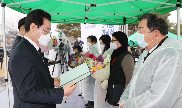 ƯÈ÷ Çлý¿îµ¿°ú ºñ¹Ð°á»ç´ë Á¶Á÷ µî Ç×ÀÏÅõÀïÀ» ¹úÀÌ´Ù ¿Á°í¸¦ Ä¡¸¥ °í ÀÌÁ¤¿À ¼±»ý, ¹®È«½Ä ¼±»ý, ¿À¸»¼ö ¼±»ý, ¹Ú±â¼ø ¼±»ý¿¡°Ô ´ëÅë·É ǥâÀ» Àü¼öÇϰí, ½Åõ¿ì, ¹Ú¿ÁÀÓ ±¤º¹È¸¿ø¿¡°Ô µµÁö»ç ǥâÀ» ¼ö¿©ÇØ Àǹ̸¦ ´õÇß´Ù.