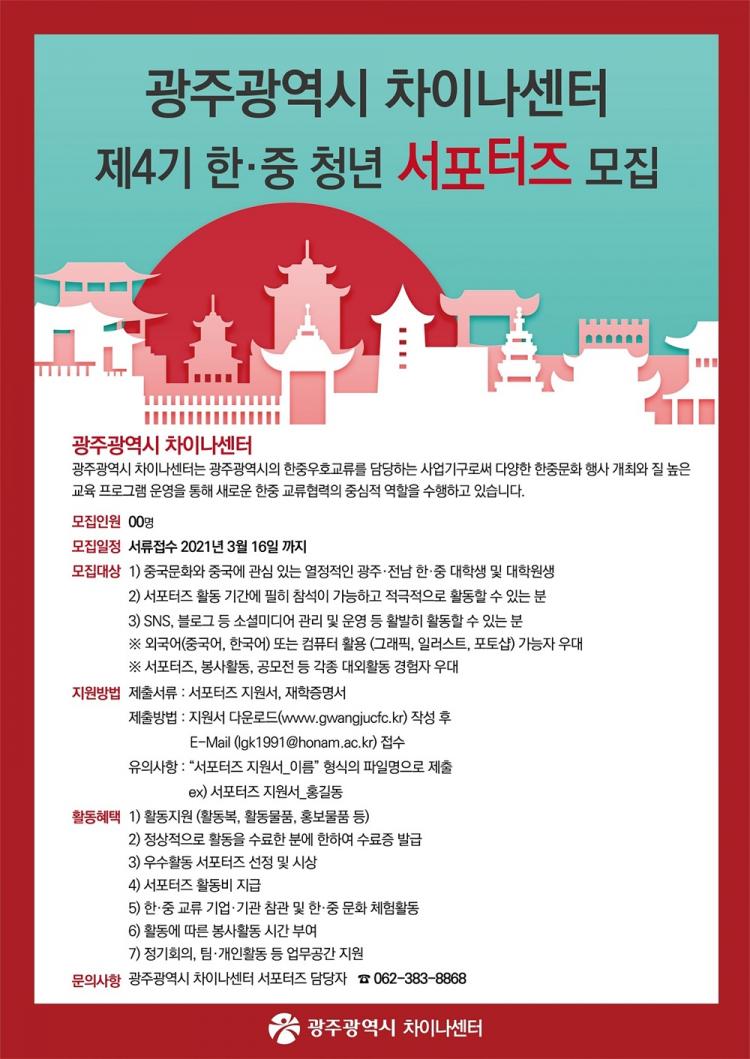 [ÅåÅå´º½º]±¤ÁÖ±¤¿ª½Ã Â÷À̳ª¼¾ÅÍ(¼¾ÅÍÀå Á¶°æ¿Ï È£³²´ë ±³¼ö)°¡ Áß±¹ ¹®È¿Í Áß±¹¿¡ °ü½É ÀÖ´Â ´ëÇÐ(¿ø)»ýÀ» ´ë»óÀ¸·Î ¡®Á¦4±â ÇÑ¡¤Áß Ã»³â ¼Æ÷ÅÍÁ¸¦ ¸ðÁýÇÑ´Ù.