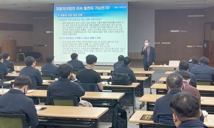 À̳¯ ±³À°¿¡´Â »ê¾÷¿¬±¸¿ø Á¶Ã¶ ¼±ÀÓ¿¬±¸À§¿øÀÌ °»ç·Î ÃÊûµÅ, ÀÚµ¿Â÷»ê¾÷ÀÇ °³¿ä, ¼¼°è ÀÚµ¿Â÷½ÃÀåÀÇ µ¿Çâ°ú Àü¸Á, ±¹³» ÀÚµ¿Â÷»ê¾÷ µ¿Çâ, ¹Ì·¡ÀÚµ¿Â÷»ê¾÷°ú Çѱ¹ÀÇ °¡´É¼º µî¿¡ ´ëÇØ Ư°À» ½Ç½ÃÇß´Ù.