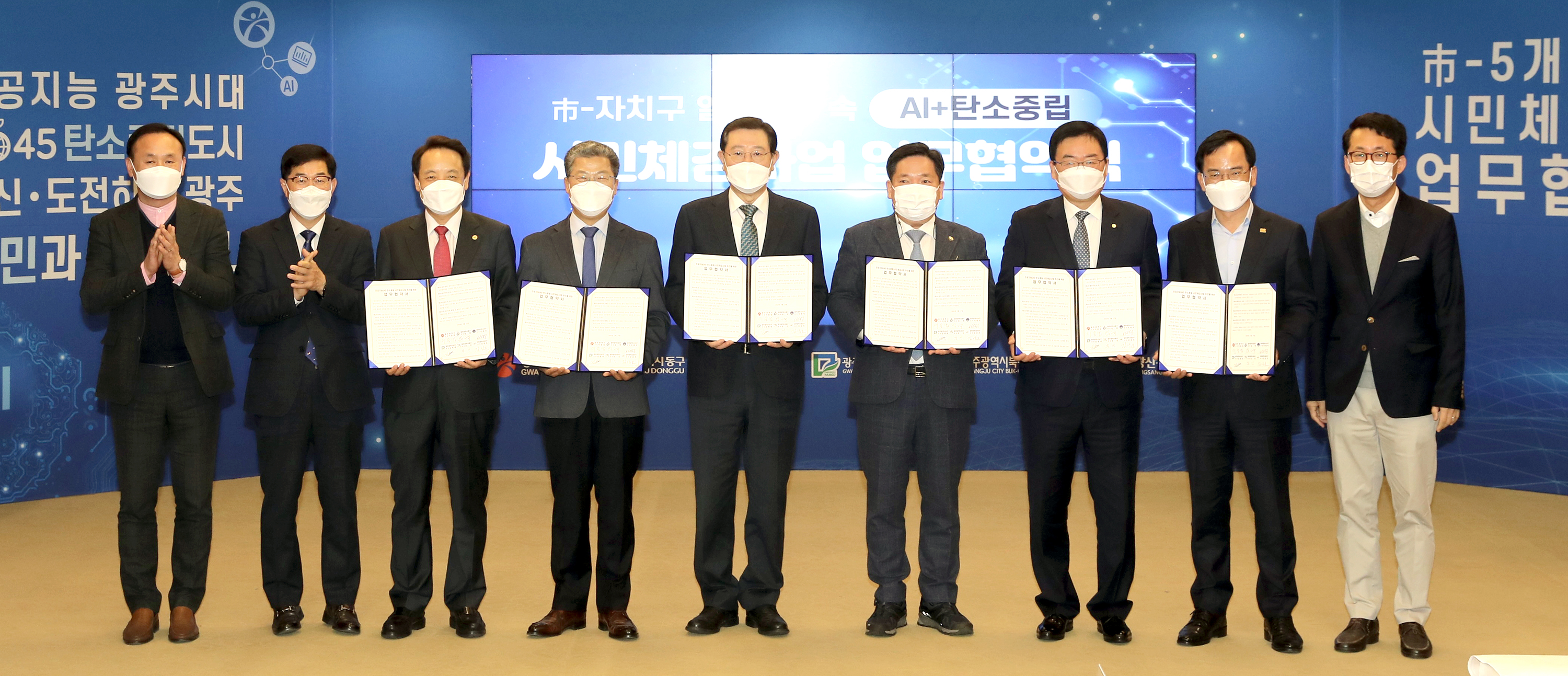 ±¤Áֽô 17ÀÏ ¿ÀÀü ½Ãû ºñÁî´Ï½º·ë¿¡¼ À̿뼷 ½ÃÀå°ú 5°³ ÀÚÄ¡±¸ ±¸Ã»Àå, ±¤ÁÖÅ×Å©³ëÆÄÅ© ÀΰøÁö´ÉÁ¾ÇÕÁö¿ø¼¾ÅÍÀåÀÌ Âü¼®ÇÑ °¡¿îµ¥ ÀÏ»ó»ýȰ ¼Ó ÀΰøÁö´É(AI)・ź¼ÒÁ߸³À» ü°¨ÇÒ ¼ö ÀÖ´Â °øÅë»ç¾÷°ú ÀÚÄ¡±¸º° ƯȻç¾÷ µî ÃÑ 31°³ »ç¾÷¿¡ ´ëÇØ °øµ¿ Çù·ÂÀ» ´ÙÁüÇÏ´Â ¾÷¹«Çù¾àÀ» ü°áÇß´Ù.