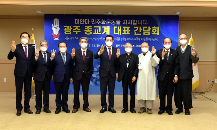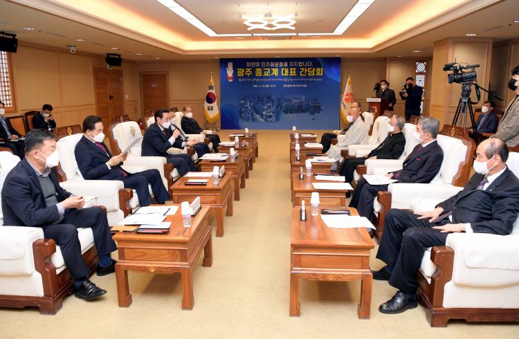 [ÅåÅå´º½º]Á¾±³°è µî ±¤ÁÖÁö¿ª °¢°è ÁöµµÀÚµéÀº 22ÀÏ ¿ÀÈÄ ±¤ÁÖ±¤¿ª½Ãû ºñÁî´Ï½º·ë¿¡¼ ¹Ì¾á¸¶ ±ººÎ Äíµ¥Å¸ ¹Ý´ë¿Í ¹ÎÁÖȿ ÁöÁö¸¦ À§ÇÑ °£´ãȸ¸¦ °®°í ½ÇÁúÀûÀÎ Áö¿ø ¹æ¾ÈÀ» ³íÀÇÇß´Ù.