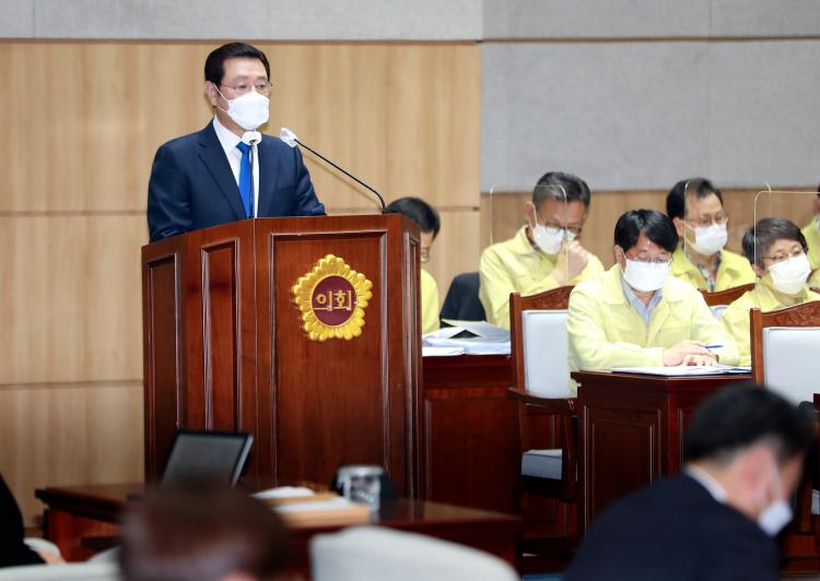 À̿뼷 ½ÃÀåÀº 31ÀÏ Á¦296ȸ ±¤ÁÖ½ÃÀÇȸ ÀÓ½Ãȸ¿¡¼ ±èµ¿Âù ÀÇ¿øÀÇ ±¤ÁÖ±¤¿ª½Ã ÁÖÅüö±ÞÁ¤Ã¥¿¡ ´ëÇÑ ½ÃÁ¤Áú¹®¿¡ ´äº¯ÇÏ¸é¼ À̰°ÀÌ ¹àÇû´Ù.