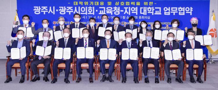 ±¤ÁÖ±¤¿ª½Ã´Â 8ÀÏ ½Ãû ÁßȸÀǽǿ¡¼ ±¤ÁÖ½ÃÀÇȸ, ±¤Áֽñ³À°Ã», ±¤ÁÖÁö¿ª ´ëÇеéÀÌ Âü¼®ÇÑ °¡¿îµ¥ Áö¿ª´ëÇÐ À§±â´ëÀÀ ¹× ´ëÇйßÀü »óÈ£Çù·ÂÀ» À§ÇÑ ¾÷¹«Çù¾àÀ» ü°áÇß´Ù.