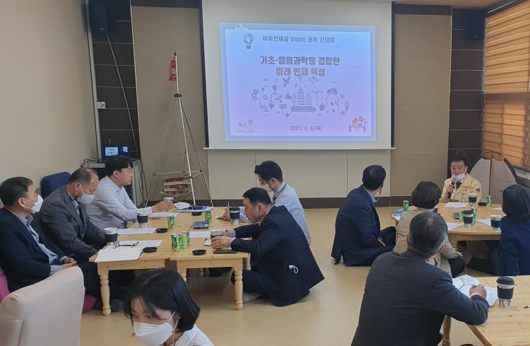Àü¶ó³²µµ±³À°Ã» ¹Ì·¡ÀÎÀç°ú´Â 4¿ù 8ÀÏ(¸ñ) û»ç ³» ¼ÒȸÀǽǿ¡¼ Àü³² ÇлýµéÀÇ Ã¢ÀÇÀ¶ÇÕ ´É·ÂÀ» ²ø¾î¿Ã¸®±â À§ÇÑ Á´ãȸ¸¦ °³ÃÖÇß´Ù.