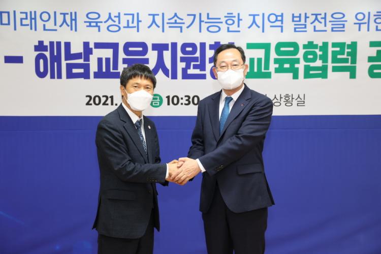 9ÀÏ ÇØ³²±ºÃ» »óȲ½Ç¿¡¼ ÁøÇàµÈ °øµ¿¹ßÇ¥¿¡´Â ¸íÇö°ü ÇØ³²±º¼ö¿Í À强¸ð ÇØ³²±³À°Áö¿øÃ» ±³À°ÀåÀÌ Âü¼®ÇØ ¿ÃÇØ ±³À°Áö¿ø ¹æÇâ°ú ÁÖ¿ä ³»¿ë¿¡ ´ëÇØ ¼³¸íÇϰí, Áö¿ªÀÇ ±³À°Çù·Âü°è ±¸ÃàÀ» ¾à¼ÓÇß´Ù.