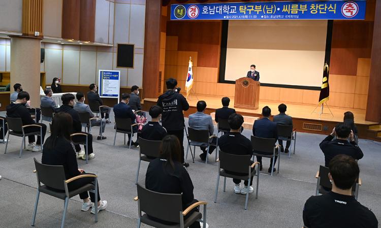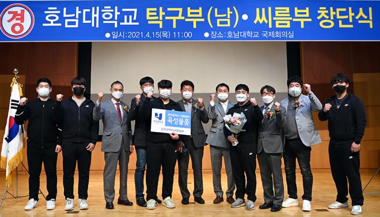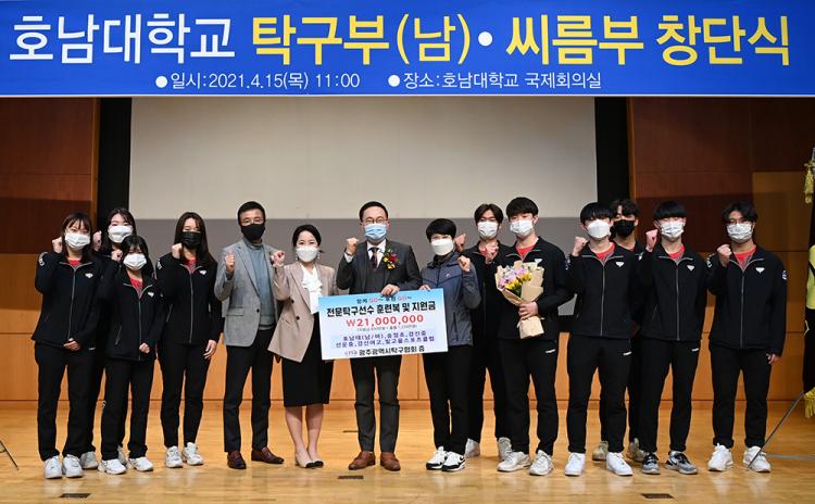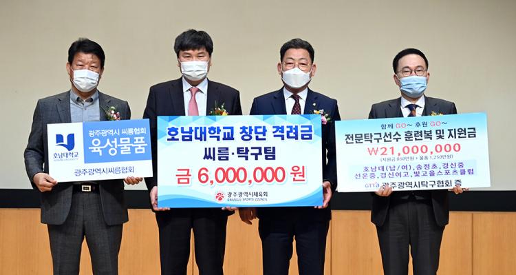 È£³²´ëÇб³´Â 4¿ù 15ÀÏ ¿ÀÀü 11½Ã ±³³» Áß¾Óµµ¼°ü 1Ãþ ±¹Á¦È¸Àǽǿ¡¼ ±¤ÁÖ±¤¿ª½ÃüÀ°È¸ ÀÌÆòÇü »ç¹«Ã³Àå°ú ¹Ú¼®ÀÎ ±¤ÁÖ½ÃŹ±¸ÇùȸÀå, ±èÁ¾Å¹ ±¤Áֽþ¾¸§ÇùȸÀå, È£³²´ë Á¶±ÔÁ¤ ¹®È¿¹¼úüÀ°´ëÇÐÀå°ú ±³¼öÁø, ¼±¼ö´ÜÀÌ Âü¼®ÇÑ °¡¿îµ¥ ³²ÀÚ Å¹±¸ºÎ¿Í ¾¾¸§ºÎ â´Ü½ÄÀ» °³ÃÖÇß´Ù.