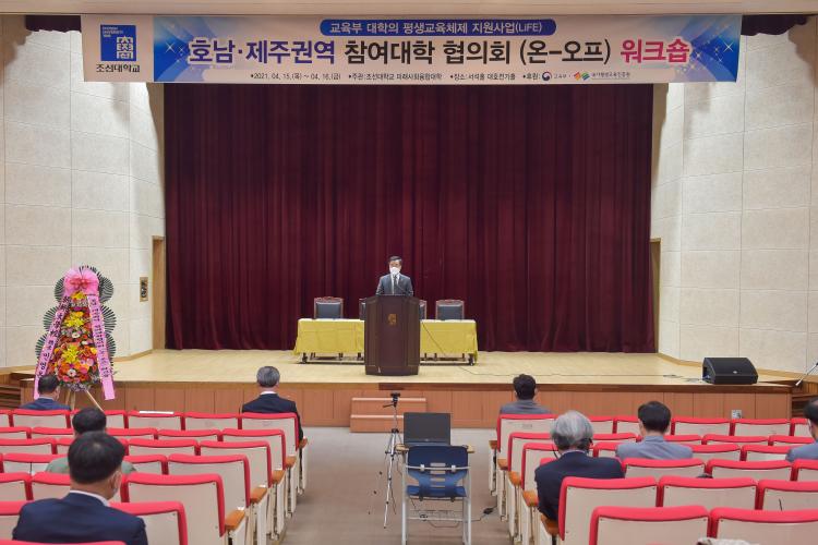 À̹ø ¿öÅ©¼óÀº 4¿ù 15ÀϺÎÅÍ ÀÌÆ²°£ Á¶¼±´ëÇб³ ¼¼®È¦ ´ëÈ£Àü±âȦ¿¡¼ ¿Â¶óÀΰú ¿ÀÇÁ¶óÀÎÀ» º´ÇàÇÑ ¹æ½ÄÀ¸·Î ÁøÇàµÇ¾úÀ¸¸ç, ±³À°ºÎ¿Í ±¹°¡Æò»ý±³À°ÁøÈï¿øÀÇ ÈÄ¿øÀ» ¹Þ¾Æ °³ÃֵƴÙ. ¿öÅ©¼óÀº ¡®´ëÇÐÀÇ Æò»ý±³À°Ã¼Á¦ Áö¿ø»ç¾÷(LiFE)¡¯À» ÁøÇàÇÏ´Â ´ëÇб³ °£ ±³·ù¿Í ¿ì¼ö»ç·Ê¸¦ °øÀ¯Çϰí, Áö¿ªÀÇ Æò»ý±³À° üÁ¦ ¹ßÀüÀ» À§ÇÑ Çù·Âü°è¸¦ ±¸ÃàÇϱâ À§ÇØ ¸¶·ÃµÆ´Ù.