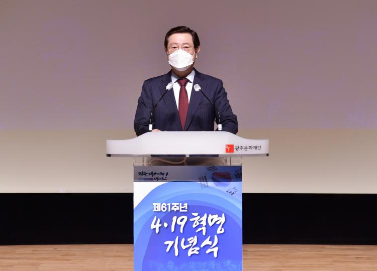 À̿뼷 ½ÃÀåÀº ±â³ä»ç¿¡¼ ¡°4¡¤19Çõ¸íÀÇ ¼þ°íÇÑ °¡Ä¡´Â 5¡¤18¹ÎÁÖȿ°ú 6¿ù Ç×Àï, ÃкÒÇõ¸íÀ¸·Î À̾îÁö¸ç Áö±ÝÀÇ ´ëÇѹα¹À» ÀÖ°Ô ÇÑ »Ñ¸®°¡ µÆ´Ù¡±¸ç ¡°61³â Àü, ºÒÀÇÇÑ ±Ç·Â¿¡ ¿Â ¸öÀ¸·Î ¸Â¼¹´ø ½Ã¹ÎµéÀÌ ±×Åä·Ï ¹Ù¶ú´ø Á¤ÀÇ·Ó°í dz¿ä·Î¿î ±¤ÁÖÀÇ ²ÞÀ» À§ÇØ ÈûÀ» ¸ð¾Æ³ª°¡ÀÚ¡±°í ¸»Çß´Ù.