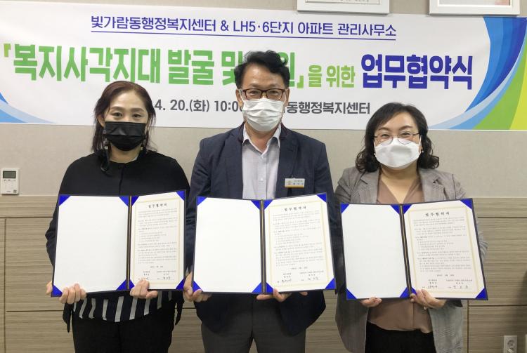 ºû°¡¶÷µ¿Àº Áö³ 20ÀÏ LH5¡¤6´ÜÁö¾ÆÆÄÆ® °ü¸®»ç¹«¼Ò(¼ÒÀå ÃÖ¹ÌÁø, Á¤ÀºÁÖ)¿Í ¡®º¹Áö»ç°¢Áö´ë ¹ß±¼ ¹× Áö¿øÀ» À§ÇÑ ¾÷¹«Çù¾à¡¯À» ü°áÇß´Ù°í 21ÀÏ ¹àÇû´Ù.