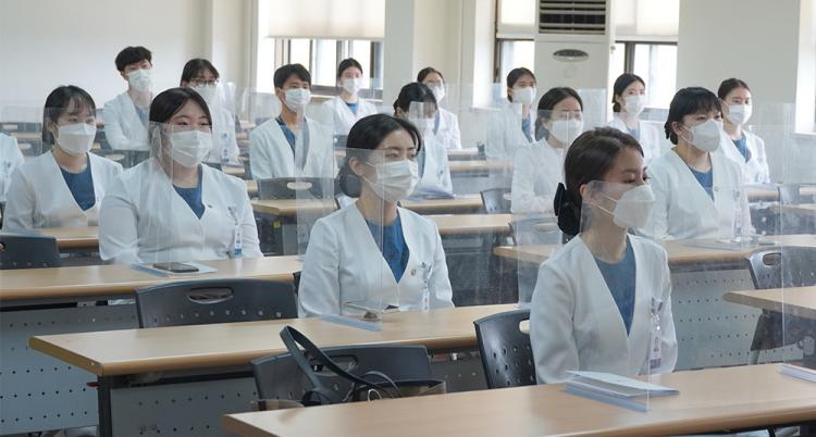 Äڷγª19 ¹æ¿ª¼öÄ¢°ú °Å¸® µÎ±â Áؼö¸¦ À§ÇØ 3°³ °Àǽǿ¡¼ ºÐ»ê °³ÃÖµÈ À̳¯ Çà»ç¿¡¼ °£È£Çаú 3Çгâ ÀçÇлýµéÀº ¡®À±¸® ¼±¾ð¹® ¼±¼¡¯¸¦ ÅëÇØ ¡°È£³²´ëÇб³ °£È£ ÇлýÀÇ À§»ó°ú ±àÁö¸¦ ³ôÀ̰í, À±¸®ÀÇ½Ä Á¦°í¿Í »çȸÀû Ã¥¹«¸¦ ¼öÇàÇϱâ À§ÇØ °£È£»ç·Î¼ÀÇ Ã¥¹«¿¡ ÃÖ¼±À» ´ÙÇÒ °Í¡±À» ´ÙÁüÇß´Ù.