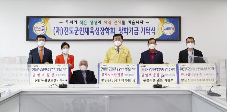 Áøµµ±ºÀÎÀçÀ°¼ºÀåÇбÝÀº ¡ãNH³óÇùÁøµµ±ºÁöºÎ(ÁöºÎÀå °Èñ½Ä) 1¾ï¿ø ¡ã¸¸±Ý¼ö»ê(´ëÇ¥ Ç㱤¹«) 100¸¸¿ø ¡ã»êµé¹Ù¶÷ÀÛ¸ñ¹Ý(´ëÇ¥ °í¿ìÆÇ) 100¸¸¿ø ¡ãÁøµµ±ºÀå¾ÖÀÎÁ¾ÇÕº¹Áö°ü ¡®420縰Áö Âü¿©¡¯ Àå¾ÖÀÎ ÀÌ¿ëÀÚ 42¸¸¿ø ¡ãÁøµµ±ºÀå¾ÖÀÎÁ¾ÇÕº¹Áö°ü ¡®420縰Áö Âü¿©¡¯ Á÷¿ø 42¸¸¿ø µîÀ» ±âŹÇß´Ù.
