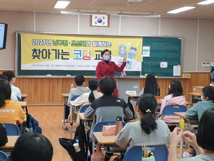 Á¶¼±´ëÇб³ SWÁ߽ɴëÇлç¾÷´ÜÀº ±¤ÁÖ±¤¿ª½Ã ³²±¸Ã»°ú ¡®ÀΰøÁö´É(AI) Ȱ¿ë Æò»ý±³À°À» À§ÇÑ AI¡¤SW±³À°À» À§ÇÑ ¾÷¹«Çù¾à¡¯À» ü°áÇÏ¿© 2019³â ¡®Ã£¾Æ°¡´Â ÄÚµù±³½Ç¡¯, ¡®Áö½ÄÀç»ê¾ÆÄ«µ¥¹Ì¡¯ ÇÁ·Î±×·¥ Áö¿ø, 2020³â¿£ ¡®AI±âÃÊȰ¿ëÀ» À§ÇÑ ÄÚµù±³½Ç¡¯±îÁö ÇÁ·Î±×·¥À» È®´ëÇÏ¿´°í, 2021³â ÇöÀçµµ ²ÙÁØÈ÷ ±¤ÁÖ±¤¿ª½Ã ³²±¸ Áö¿ª¹ÎÀ» À§ÇÑ AI¡¤SW°¡Ä¡È®»ê ÇÁ·Î±×·¥À» ÁøÇà ÁßÀÌ´Ù.