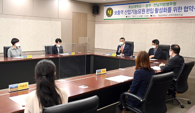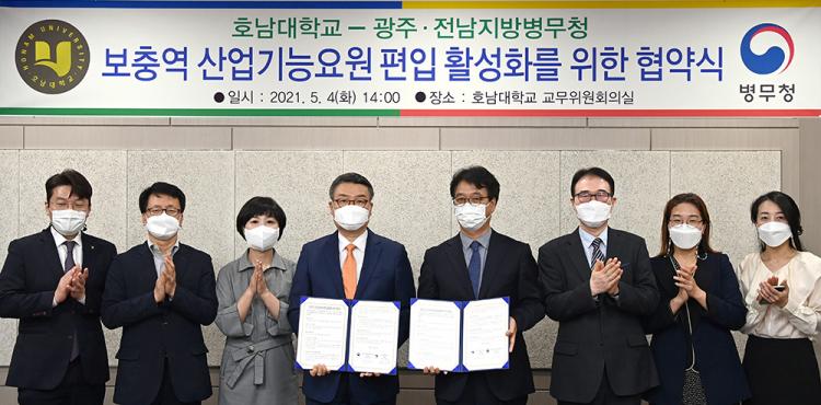 È£³²´ëÇб³¿Í ±¤ÁÖ¡¤Àü³²Áö¹æº´¹«Ã»Àº À̹ø Çù¾àÀ» ÅëÇØ »çȸº¹¹«¿ä¿ø ¼ÒÁý´ë»óÀ¸·Î º¸Ã濪 »ê¾÷±â´É¿ä¿ø ÆíÀÔÀ» Èñ¸ÁÇϴ ȣ³²´ë ÀçÇлý¿¡ ´ëÇØ ±º º¹¹«ÀÌÇà°ú Ãë¾÷À» µ¿½Ã¿¡ ÇØ°áÇÒ ¼ö ÀÖ´Â »ê¾÷±â´É¿ä¿ø ÆíÀÔ Á¦µµ È«º¸ ¹× ¼³¸íȸ °³ÃÖ µî¿¡ Àû±Ø Çù·ÂÇϱâ·Î Çß´Ù.