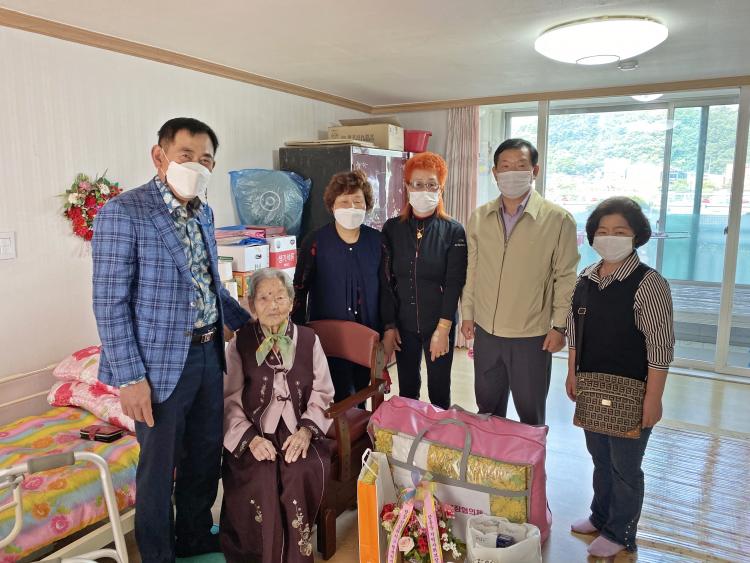À̳¯ ÇùÀÇü À§¿ø°ú ÀåÈïÀ¾ »õ¸¶À» ºÎ³àȸ¿øµéÀº 100¼¼ ÀÌ»ó ¾î¸£½Å 1°¡Á¤À» ¹æ¹®ÇØ Á÷Á¢ ÁغñÇÑ À½½Ä°ú ¼±¹°(À̺Ò, Àá¿Ê, ²É¹Ù±¸´Ï µî)À» Àü´ÞÇϰí Ä«³×À̼ÇÀ» ´Þ¾Æµå·È´Ù.
