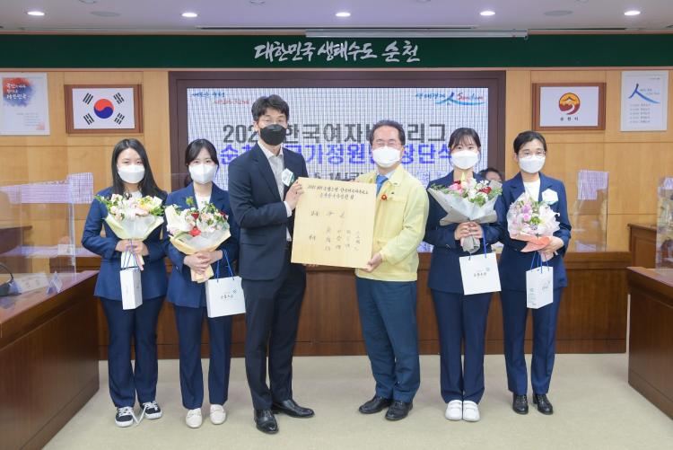 ½Ã´Â 14ÀÏ ½Ãû ¼ÒȸÀǽǿ¡¼ Çã¼® ¼øÃµ½ÃÀåÀ» ºñ·ÔÇÑ ¼øÃµ½Ã °ü°èÀÚ¿Í ¾ç°Ç °¨µ¶, ¿ÀÀ¯Áø, ¹ÚÅÂÈñ, ÀåÇý·É, ±è»óÀÎ ¼±¼ö°¡ Âü¼®ÇÑ °¡¿îµ¥ â´Ü½ÄÀ» °®°í ÆÀ â´ÜÀ» ÃàÇÏÇÏ°í ±â³äÇß´Ù.