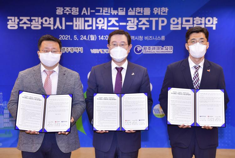 ±¤ÁÖ±¤¿ª½Ã´Â 24ÀÏ ¿ÀÈÄ ½Ãû ºñÁî´Ï½º·ë¿¡¼ À̿뼷 ½ÃÀå°ú ¢ßº£¸®¿öÁî ±è¼º¿ì ´ëÇ¥, ±¤ÁÖÅ×Å©³ëÆÄÅ© ¹ÚÁ¤È¯ Áö¿ª»ê¾÷À°¼º½ÇÀå µîÀÌ Âü¼®ÇÑ °¡¿îµ¥ ¡®±¤ÁÖÇü AI-±×¸°´ºµô ½ÇÇöÀ» À§ÇÑ ¾÷¹«Çù¾à¡¯À» ü°áÇß´Ù.