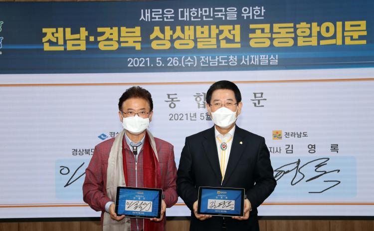 Àü³²µµ¿Í °æºÏµµ´Â 26ÀÏ Àü³²µµÃ»¿¡¼ ±è¿µ·Ï․ÀÌö¿ì µÎ µµÁö»ç¸¦ ºñ·ÔÇÑ ½Ç±¹Àå, ÀçÀü³² °æºÏÇâ¿ì µîÀÌ Âü¼®ÇÑ °¡¿îµ¥ ¡®2021³â Àü³²¡¤°æºÏ »ó»ýÇù·Â ȸÀÇ¡¯¸¦ ¿¾î »õ ´ëÇѹα¹ °Ç¼³ÀÇ Á߽ɿ¡ ¼±â À§ÇÑ ±»°ÇÇÑ »ó»ý․¹ßÀüÀ» ´ÙÁüÇß´Ù.