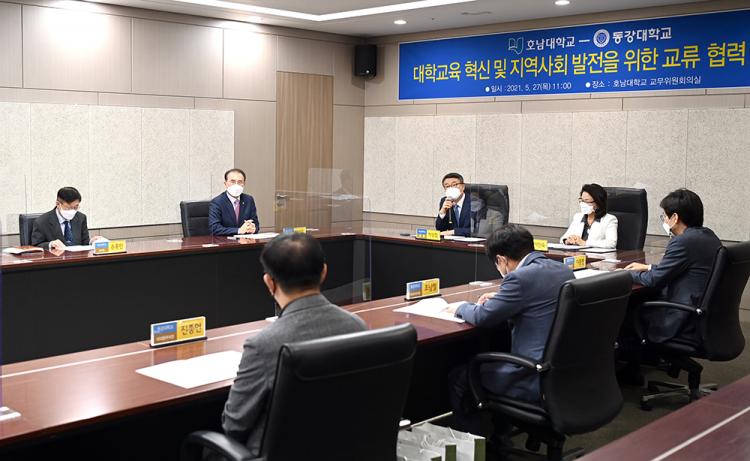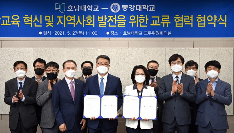 ¹Ú»óö È£³²´ëÇб³ ÃÑÀåÀº ¡°Áö¿ª ¿ì¼ö Àü¹®´ëÇÐÀÎ µ¿°´ëÇб³¿Í ´ëÇÐÇõ½ÅÀ» À§ÇÑ Çù¾à¿¡ ±×Ä¡Áö ¾Ê°í ½ÇÁúÀûÀÎ ±³À°°úÁ¤ ¹× ºñ±³°ú ±³À°ÇÁ·Î±×·¥ÀÇ °³¹ß°ú ±³·ù¸¦ ´õ¿í °ÈÇØ ³ª°¡°Ú´Ù¡±°í °Á¶Çß´Ù.