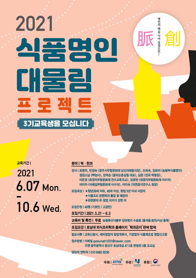 È£³²´ë »êÇÐÇù·Â´Ü(´ÜÀå À±Àθð)ÀÌ ÁÖ°üÇÏ´Â À̹ø ÇÁ·ÎÁ§Æ®´Â ½Äǰ Àü¹®ºÐ¾ß ¼÷·Ã±â¼úÀÎÀÇ ±â¼úÀ» ¿¹ºñâ¾÷ÀÚ³ª ±ââ¾÷Àڵ鿡°Ô Àü¼öÇØ Àü¹® ½Äǰ±â¼úÀÇ °è½Â¹ßÀü°ú ½Äǰ»ê¾÷ Ȱ¼ºÈ¸¦ À§ÇÑ »ç¾÷À¸·Î, ¿Ü½ÄÁ¶¸®Çаú ±³¼öÆÀ(ÇаúÀå ±è¿µ±Õ, Ã¥ÀÓ±³¼ö ¼Û±âÈñ)À» Áß½ÉÀ¸·Î 6¿ù 7ÀϺÎÅÍ 5°³¿ù°£ ¶±¡¤ÇѰúºÐ¾ß·Î ƯÈÇØ µðÀúÆ® ½ÃÀå¿¡ ÁøÀÔÇÒ Àü¹® ÀηÂÀ» ¾ç¼ºÇÏ°Ô µÈ´Ù.