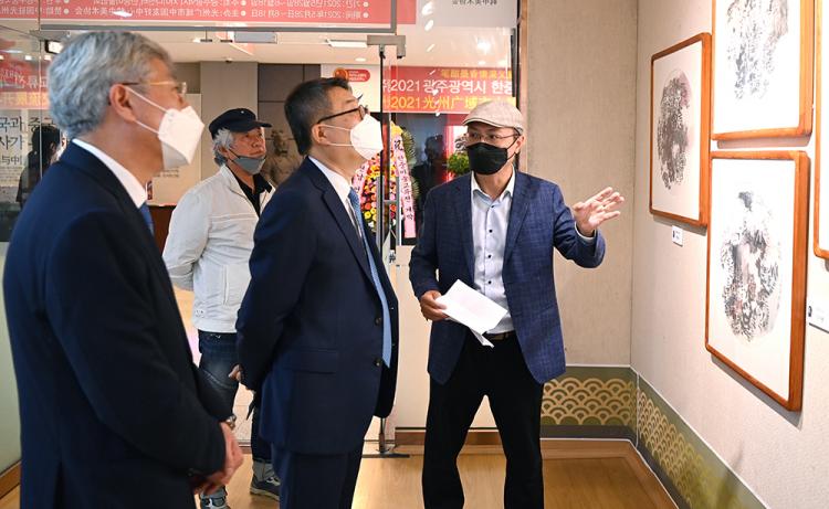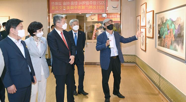 [ÅåÅå´º½º]±¤ÁÖ Â÷À̳ª¼¾ÅÍ(¼¾ÅÍÀå Á¶°æ¿Ï È£³²´ë ±³¼ö)¿Í ÇÑ¡¤Á߹̼úÇùȸ(ȸÀå À±»ó¹Î)°¡ °øµ¿ ÁÖÃÖÇÏ´Â ¡®2021 ±¤ÁÖ±¤¿ª½Ã ÇÑ¡¤Áß ¹Ì¼ú ±³·ùÀü¡¯ÀÌ 5¿ù 28ÀÏ ¿ÀÈÄ 3½Ã 30ºÐ Â÷À̳ª¼¾ÅÍ 1Ãþ ´Ù¸ñÀûȦ¿¡¼ °³¸· Å×ÀÌÇÁ¸¦ ²÷°í 3ÁÖ°£ÀÇ Àü½Ã ÀÏÁ¤¿¡ µé¾î°¬´Ù.