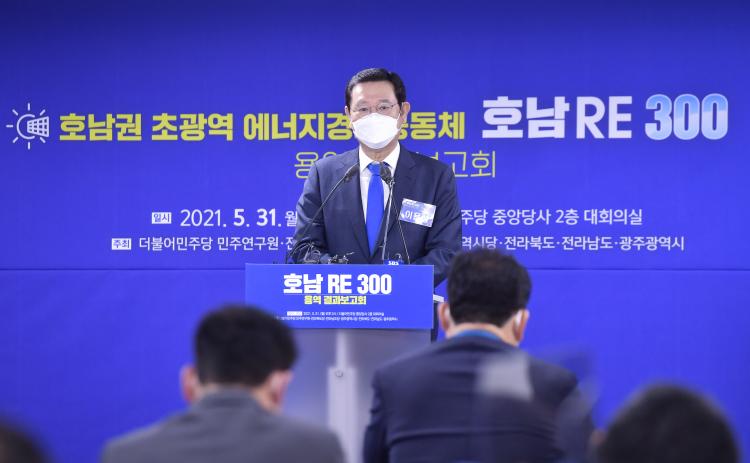 ¼Û°©¼® ±¤ÁֽôçÀ§¿øÀåÀº ¹ßÇ¥¸¦ ÅëÇØ ¡°È£³² RE300Àº Àç»ý¿¡³ÊÁö»ê¾÷ »ýŰè·Î Ãʱ¤¿ª±Ç °æÁ¦°øµ¿Ã¼¸¦ ±¸ÃàÇÏ´Â ¼¼°è ÃÖÃÊÀÇ ½Ãµµ¡±¶ó¸ç ¡°È£³²±ÇÀÌ ¼±µµÇÏ´Â ¡®Ãʱ¤¿ª¿¡³ÊÁö¸Á¡¯Àº ź¼ÒÁ߸³À̶ó´Â ¼¼°èÀû¡¤½Ã´ëÀû È帧 ¼Ó ´ëÇѹα¹ °æÁ¦¸¦ Ãß°ÝÇü¿¡¼ ¼±µµÇüÀ¸·Î Å»¹Ù²Þ½Ãų °Í¡±À̶ó°í °Á¶Çß´Ù.