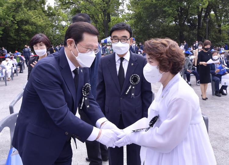 Ãß³ä½ÄÀº À̿뼷 ½ÃÀå, À±¿µ´ö¡¤¼Û°©¼®¡¤À̺´ÈÆ¡¤¾çÇâÀÚ¡¤Á¶¿À¼·¡¤¹ÎÇü¹è¡¤°Àº¹Ì ±¹È¸ÀÇ¿ø, ±è¿ëÁý ½ÃÀÇȸ ÀÇÀå, ÀåÈÖ±¹ ½Ã ±³À°°¨, ÀÓ¼ºÇö ±¤ÁÖÁö¹æº¸ÈÆÃ»Àå, ÃÖ¼ø°Ç Á¦31»ç´Üº¸º´»ç´ÜÀå, ·ùÁø»ê °ø±º Á¦1ÀüÅõºñÇà´ÜÀå, ¹Ú»ó¼³ 331±º»ç¾Èº¸Áö¿øºÎ´ëÀå, Àü¸ô±º°æ À¯Á·, »óÀ̱º°æ, º¸Èư¡Á· µî 99¸íÀÌ Âü¼®Çß´Ù.
