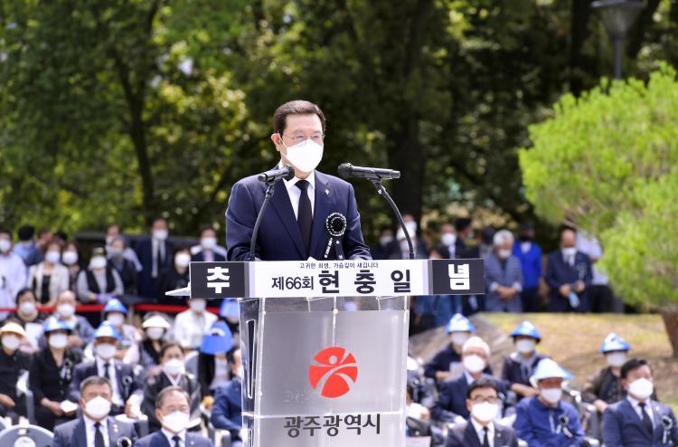 À̿뼷 ½ÃÀåÀº Ãß³ä»ç¿¡¼ ¡°±¤ÁֽùÎÀº ½Ã´ë¹ßÀüÀ» ¼±µµÇÏ´Â ¼Ò¸íÀǽÄ, °ÇÑ µµÀüÁ¤½Å°ú ¹®Á¦ÀǽÄ, ¹®È¸¦ ±â¹ÝÀ¸·Î ÇÑ Ã¢ÀǼº°ú »ó»ó·ÂÀ» ±¤ÁÖ¹ßÀüÀÇ µ¿·Â »ï¾Æ ´©±¸µµ µû¶ó¿Ã ¼ö ¾ø´Â ±¤ÁÖÀÇ ½Ã°£À» ¿¾î°¡°í ÀÖ´Ù¡±¸ç ¡°¼ø±¹¼±¿°ú È£±¹¿µ·É ¾Õ¿¡ ºÎ²ô·´Áö ¾ÊÀº ÈÄ´ë°¡ µÇ°í ¼±¿µéÀÇ ¶æÀ» ¹Þµé¾î ±× Èñ»ý¿¡ °ªÁö°Ô ÇÏ´Â ±æ¿¡ ±¤ÁÖ°¡ ´õ¿í ¾ÕÀå¼°Ú´Ù¡±°í ¸»Çß´Ù.