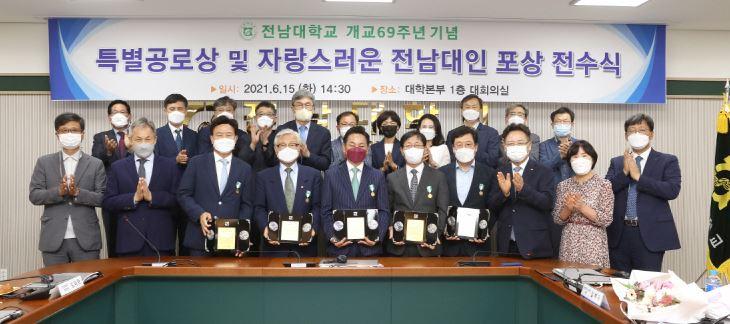 Á¤¼ºÅà ÃÑÀåÀº 15ÀÏ ´ëÇк»ºÎ ´ëȸÀǽǿ¡¼ ¡®Æ¯º°°ø·Î»ó ¹× ÀÚ¶û½º·¯¿î Àü³²´ëÀÎ Æ÷»ó Àü¼ö½Ä¡¯À» °®°í »óÆÐ¿Í ºÎ»óÀ» Àü´ÞÇß´Ù.