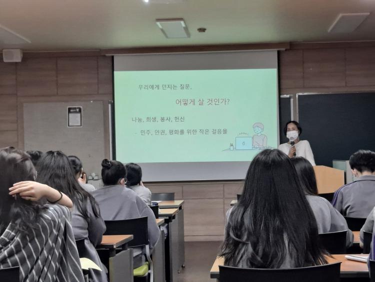 µé¾î°¡´Â ´Ü°è¿¡¼´Â ÀÏÁ¦ °Á¡±â ½Ã´ë¿¡ ¿ì¸®°¡ °Þ¾ú´ø ¾ÆÇİú ±¤ÁÖÁö¿ªÀ» ±â¹ÝÀ¸·Î Çϰí ÀÖ´Â Àι°µéÀ» ¼Ò°³Çϰí ÀÚÁÖµ¶¸³ Á¤½ÅÀ» º¸¿©ÁØ »ç·ÊµéÀ» Çлýµé¿¡°Ô ¼³¸íÇß´Ù. Áß¡¤ÈĹݺο¡¼´Â Çö´ë»ç¿¡¼ ¿ì¸®³ª¶óÀÇ ¹ÎÁÖÈ °úÁ¤¿¡¼ º¸¿©ÁØ ±¤ÁÖÁö¿ª Àι°µéÀÇ È°¾à°ú ¹ÎÁÖÈ Á¤½ÅÀ» ÇлýµéÀÌ ±ú¿ìÄ¡´Â µ¥ ÃÊÁ¡À» ¸ÂÃè´Ù. ¸¶Áö¸· ºÎºÐ¿¡¼´Â 1987³â 6¿ù Ç×Àï¿¡¼ ÀÌÇÑ¿ ¿»ç°¡ ½É¾îÁØ ¿ì¸® ½Ã´ëÀÇ ¸ð½À°ú Á¤½Å¿¡ ´ëÇØ »ìÆìº¸°í ÁúÀǽð£À» °¡Á³´Ù.