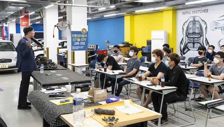 »ê¾÷ÀÚ¿øºÎ¿Í ±¤ÁÖ±¤¿ª½ÃÀÇ Áö¿øÀ» ¹Þ¾Æ Áö³ 6¿ù 21ÀϺÎÅÍ ÁÖ 3ȸ¾¿ »ó»ó°øÀÛ¼Ò¿¡¼ ÁøÇàµÇ°í ÀÖ´Â À̹ø ÇÁ·Î±×·¥Àº ¹Ì·¡ÀÚµ¿Â÷°øÇкΠ±èö¼ö¡¤¼Õº´·¡ ±³¼ö¿Í ¿ÜºÎ ÃÊû°»çµéÀÌ Â÷·Ê·Î ³ª¼ ÇÏÀ̺긮µå ÀÚµ¿Â÷ ¹× Àü±âÀÚµ¿Â÷ÀÇ Æ¯¼º ¹× ±¸¼º ºÎǰÀÇ ¿ªÇÒ°ú °íÀü¾Ð¾ÈÀü°ü¸®¿¡ ´ëÇÑ ±³À°À» ½Ç½ÃÇϰí ÀÖ´Ù. ±³À°À» À̼öÇÑ Âü°¡ÀÚµéÀº °íÀü¾Ð ¾ÈÀü°ü¸® Level 1ÀÇ ÀÚ°ÝÀ» °®Ãß°Ô µÈ´Ù.