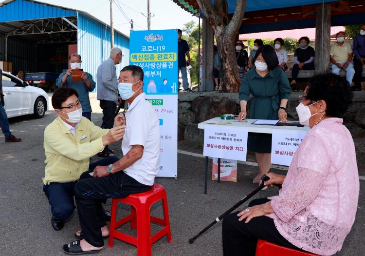 ±èö¿ì º¸¼º±º¼ö´Â ¡°Äڷγª19 ¹é½Å¿¡ ´ëÇØ ºÒ¾È°¨ÀÌ ³ôÀ» ¶§ºÎÅÍ ÀÌ¿ôÀÇ ¾ÈÀüÀ» À§ÇØ ¼Ö¼±ÇØ ÁØ ±º¹ÎÀÌ ÀÖ¾ú±â¿¡ Áö±ÝÀº ³ôÀº ¹é½Å Á¢Á¾·üÀ» À¯ÁöÇϰí ÀÖ´Ù.¡±¸é¼ ¡°¾à¼ÒÇÑ ±Ý¾×ÀÌÁö¸¸ ¹é½Å Á¢Á¾¿¡ Àû±Ø Âü¿©ÇØ Áֽбº¹Î²² °¨»çÀÇ ¸¶À½À» ÀüÇϰí, ´õºÒ¾î ¿ì¸® Áö¿ª ¼Ò»ó°øÀε鿡°Ô Á¶±ÝÀ̳ª¸¶ º¸ÅÆÀÌ µÇ°í °æ±â°¡ »ì¾Æ³ª±â¸¦ ¹Ù¶ó´Â ¸¶À½¿¡¼ Áö¿ª ÈÆóÀÎ º¸¼º»ç¶û»óǰ±ÇÀ¸·Î Áغñ Çß´Ù.¡±°í ¸»Çß´Ù.