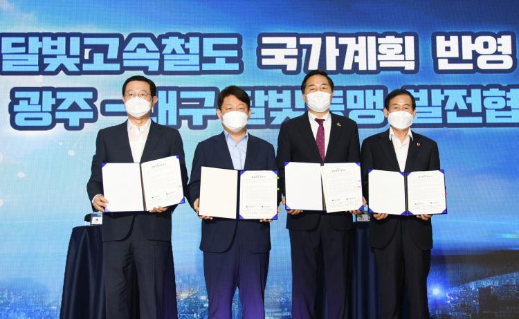 [ÅåÅå´º½º] À̿뼷 ±¤ÁÖ±¤¿ª½ÃÀå°ú ±Ç¿µÁø ´ë±¸±¤¿ª½ÃÀåÀÌ 6ÀÏ ¿ÀÈÄ ´Þºû°í¼ÓöµµÀÇ Ãâ¹ßÁ¡ÀÎ ±¤ÁÖ¿ª¿¡¼ ¿¸° '2021 Á¦2±â ´Þºûµ¿¸Í ¹ßÀüÇù¾à½Ä'¿¡ Âü¼®ÇØ ¾÷¹«Çù¾àÀ» ü°áÇÑ µÚ ±è¿ëÁý ±¤ÁÖ½ÃÀÇȸ ÀÇÀå, Àå»ó¼ö ´ë±¸½ÃÀÇȸ ÀÇÀå°ú ±â³äÃÔ¿µÀ» Çϰí ÀÖ´Ù./±¤ÁÖ±¤¿ª½Ã Á¦°ø