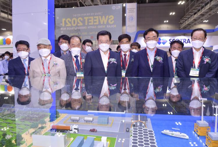 À̿뼷 ½ÃÀåÀº °³¸·½Ä ȯ¿µ»ç¿¡¼ ¡°À̹ø Àü½Ãȸ´Â ±×¸°´ºµôÀ» ¼±µµÇÏ´Â ¿¡³ÊÁö ½Å»ê¾÷¿¡ ´ëÇÑ Á¤º¸ °øÀ¯·Î ±¤Áֽð¡ 2045 ¿¡³ÊÁö ÀÚ¸³µµ½Ã ½ÇÇöÀ» À§ÇØ ¾ÕÀ¸·Î ³ª¾Æ°¡¾ß ÇÒ ¹æÇâÀ» Á¦½ÃÇÏ´Â ÀÚ¸®°¡ µÉ °ÍÀÌ´Ù¡±¸ç ¡°´õºÒ¾î Äڷγª19 Àå±âÈ·Î ¾î·Á¿î ±â¾÷µéÀÇ ±¹³»¡¤¿Ü ÆÇ·Î°³Ã´ Áö¿øÀ¸·Î »õ·Î¿î µµ¾àÀÇ ¹ßÆÇÀ» ¸¶·ÃÇÏ´Â ±âȸ°¡ µÇ±æ ¹Ù¶õ´Ù¡±°í ¸»Çß´Ù.
