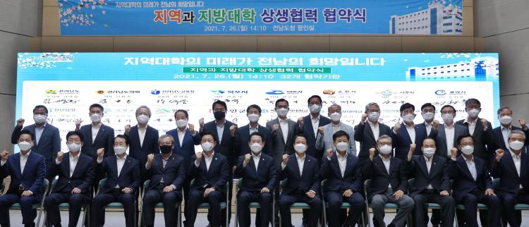 Àü³²µµ °ø½Ä À¯Æ©ºê ä³ÎÀÎ ¡®À¸¶äÀü³²Æ©ºê¡¯·Î »ýÁß°èÇÑ À̳¯ Çù¾à½ÄÀº Àü³²µµ, µµÀÇȸ, µµ±³À°Ã», 9°³ ½Ã±º, 20°³ ´ëÇÐ µî 32°³ ±â°üÀÌ Âü¿©Çß´Ù. Áö¿ª°ú ´ëÇÐÀÇ »óÈ£Çù·ÂÀ» ÅëÇØ Áö¹æ´ëÇÐÀÇ À§±â¸¦ ±Øº¹Çϱâ À§ÇÑ °ÍÀÌ´Ù. 9°³ ½Ã±ºÀº Áö¿ª ´ëÇÐÀÌ ¼ÒÀçÇÑ ¸ñÆ÷½Ã, ¿©¼ö½Ã, ¼øÃµ½Ã, ³ªÁÖ½Ã, ±¤¾ç½Ã, ´ã¾ç±º, °î¼º±º, ¿µ¾Ï±º, ¹«¾È±ºÀÌ´Ù.