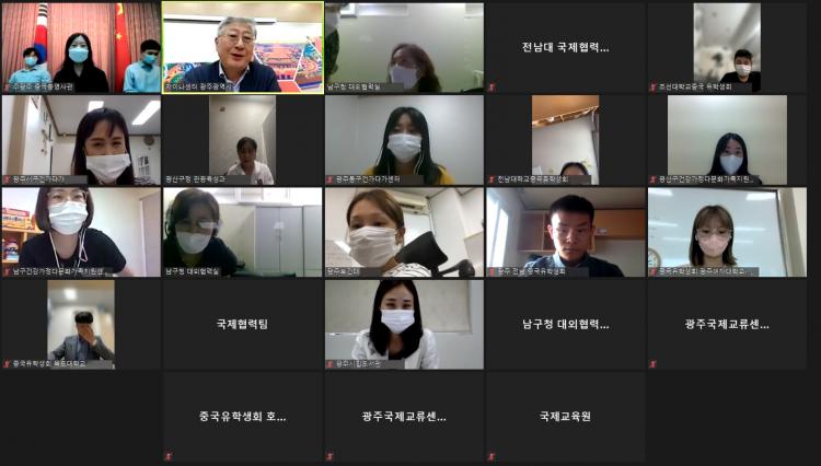 ZOOM ¿Â¶óÀÎ Ç÷§ÆûÀ» ÅëÇØ ÁøÇàµÈ À̹ø °£´ãȸ´Â ÁÖ±¤ÁÖÁß±¹ÃÑ¿µ»ç°ü°ú ³²±¸Ã», ±¤»ê±¸Ã», Àü³²´ë ±¹Á¦Çù·Âº»ºÎ µî ÁöÀÚü¿Í Áö¿ª ´ëÇÐ ±¹Á¦ Çù·Â ºÎ¼, ±¤ÁÖÁö¿ª 5°³ ±¸ ´Ù¹®È°Ç°°¡Á¤Áö¿ø¼¾ÅÍ, 6°³ ´ëÇÐ Áß±¹ À¯Çлýȸ, ±¤ÁÖ±¹Á¦±³·ù¼¾ÅÍ µî ±¤ÁÖÁö¿ª °ü·Ã Ä¿¹Â´ÏƼ 25°³ ±â°üÀÌ Âü¿©ÇßÀ¸¸ç °¢ ±â°ü º° ÁÖ¿ä ÇÁ·Î±×·¥ ¼Ò°³ ¹× ÇϹݱâ ÀÏÁ¤À» °øÀ¯ÇÏ°í ´Ù¾çÇÑ °øµ¿ Çù·Â ÇÁ·Î±×·¥µéÀ» ¸ð»öÇÏ¿´´Ù.