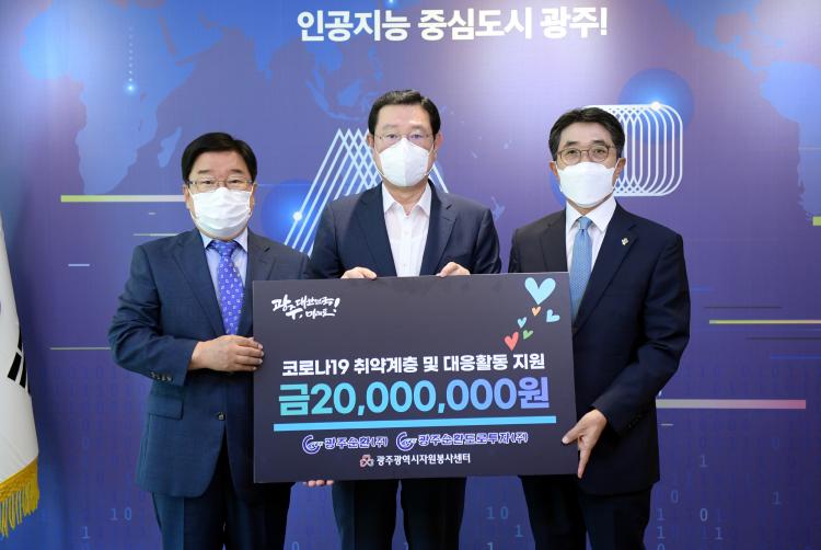 ±¤ÁÖ±¤¿ª½Ã´Â 9ÀÏ ¿ÀÀü ½Ãû Á¢°ß½Ç¿¡¼ ±¤ÁÖ»çȸº¹Áö°øµ¿¸ð±Ýȸ, ±¤ÁÖ¼øÈ¯µµ·ÎÅõÀڢߡ¤±¤ÁÖ¼øÈ¯¢ß¿Í Áö¿ø±Ý Àü´Þ½ÄÀ» ¿¬´Þ¾Æ °¡Á³´Ù.
