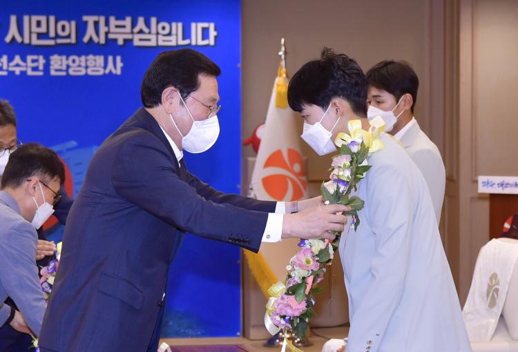 ±¤ÁÖ±¤¿ª½Ã´Â 11ÀÏ ¿ÀÈÄ ½Ãû ºñÁî´Ï½º·ë¿¡¼ Çϰè¿Ã¸²ÇÈ ÃÖÃÊ ¾ç±Ã ±Ý¸Þ´Þ 3°ü¿Õ ¾È»ê(±¤ÁÖ¿©´ë), Ææ½Ì ¿©¼º´Üü Àº¸Þ´Þ °¿µ¹Ì(¼±¸Ã»), ±Ù´ë5Á¾¿¡¼ ´ëÇѹα¹ ÃÖÃÊ µ¿¸Þ´ÞÀ» µý Àü¿õÅÂ(±¤ÁÖ½Ãû) ¼±¼ö µî ¼±¼ö´Ü 9¸íÀÌ Âü¼®ÇÑ °¡¿îµ¥ ȯ¿µÇà»ç¸¦ ¿¾ú´Ù.