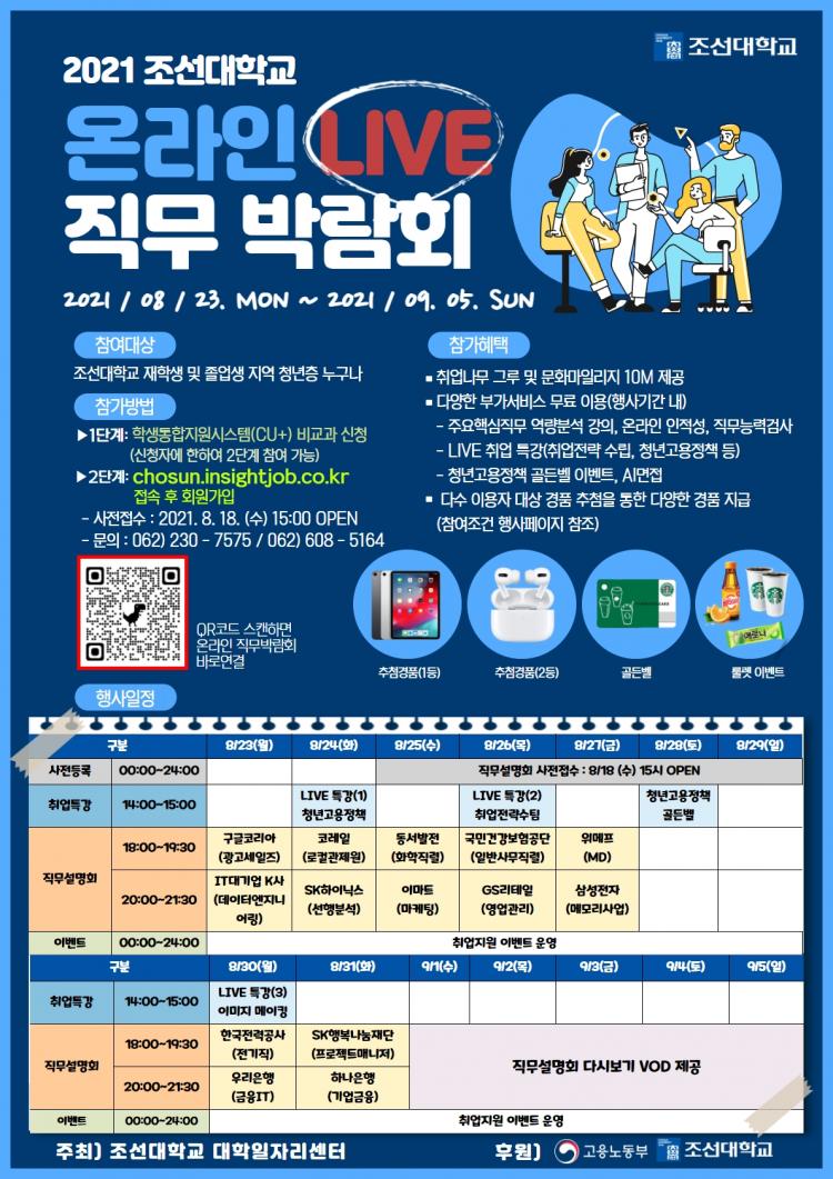 ÀçÇлýÀÇ °æ¿ì ÇлýÅëÇÕÁö¿ø½Ã½ºÅÛ(https://cuplus.chosun.ac.kr) ºñ±³°ú°úÁ¤ ÇÁ·Î±×·¥À» ÅëÇØ 1Â÷ ½ÅûÀ» ÇÑ µÚ ¿Â¶óÀÎ Á÷¹«¹Ú¶÷ȸ Àü¿ë ȨÆäÀÌÁö(chosun.insightjob.co.kr)¸¦ ÅëÇØ 2Â÷ ½ÅûÀ» Á¢¼öÇÏ¸é µÈ´Ù. Áö¿ª û³âÀÇ °æ¿ì Á¶¼±´ëÇб³ ¿Â¶óÀÎ Á÷¹«¹Ú¶÷ȸ Àü¿ë ȨÆäÀÌÁö¸¦ ÅëÇØ ½ÅûÇÏ¸é µÈ´Ù. »çÀü Á¢¼ö´Â 18ÀϺÎÅÍ 22ÀϱîÁö´Ù.