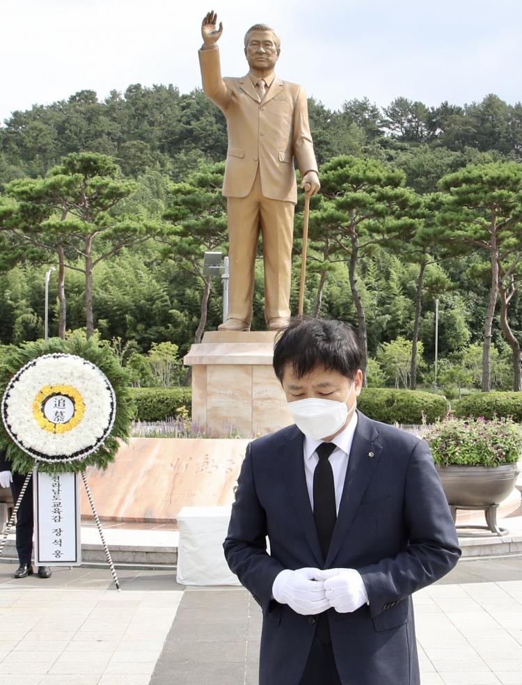 Àå¼®¿õ ±³À°°¨Àº ¡°±è´ëÁß ´ëÅë·ÉÀÇ Ã¶Çаú Á¤½ÅÀ» ¿ÂÀüÈ÷ ¹Þµé°í, ´ëÅë·É²²¼ »ýÀü¿¡ °Á¶Çϼ̴ø ¹ÎÁÖ¡¤Àαǡ¤ÆòÈÀÇ °¡Ä¡¸¦ ¾ðÁ¦±îÁö¶óµµ ÀÌ¾î °¡°Ú´Ù.¡±¸é¼ ¡°À̸¦ ¹ÙÅÁÀ¸·Î Àü³² ¾ÆÀ̵éÀÌ ¹ÎÁÖÁÖÀÇ¿Í ÀαÇÀ» Á¸ÁßÇÏ´Â ¹ÎÁֽùÎÀ¸·Î ÀÚ¶ó³¯ ¼ö ÀÖµµ·Ï ¹ÎÁֽùα³À°¿¡ ´õ¿í ³ë·ÂÇϰڴÙ.¡±°í ¸»Çß´Ù.