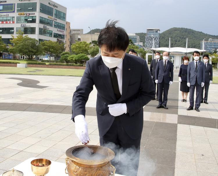 À̹ø Çà»ç¿¡´Â Äڷγª19 »óȲÀ» °í·Á, Àå¼®¿õ ±³À°°¨À» ºñ·ÔÇÑ ±¹Àå±Þ ÀÌ»ó °£ºÎ µî 10¿© ¸í¸¸ Âü¼®ÇØ °í ±è´ëÁß ´ëÅë·ÉÀ» Ã߸ðÇϸç, µ¿»ó ¾Õ¿¡ ÇåÈÇÏ°í ºÐÇâÇß´Ù.